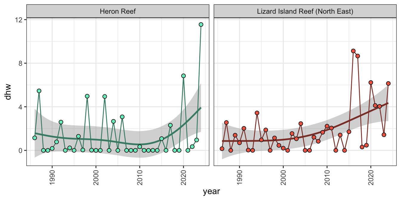 ylab("Degree Heating Weeks")+ xlab("Year") +